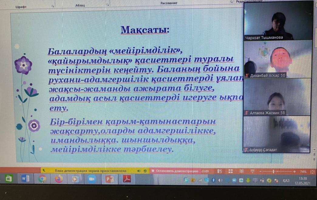 15-мамыр - Халықаралық отбасы күніне орай оқушылардың отбасы туралы түсініктерін кеңейту, отбасы құндылықтарын дәріптеу, қайырымдылық, достық қарым-қатынасты қалыптастыру, үлкенді сыйлауға, сыпайы, ілтипатты болуға тәрбиелеу мақсатында Шона Смаханұлы атындағы №62 гимназияда 1-11 сынып оқушылары арасында "Мейірімділік пен қайырымдылық - адамның ең жақсы қасиеті" атты ашық тәрбие сағаты өтті. Оқушылар жанұядағы сыйластық, бірлік пен татулықты, үлкенді үлгі, кішіні мақтан етуді, отбасы бірлігін сақтау керектігін ұғынды. @kopd_mon_rk