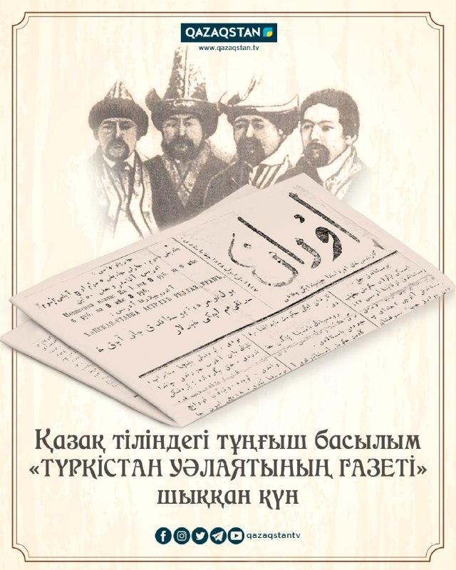 1870 жылы 28 сәуірде Ташкент қаласында тұңғыш қазақ басылымы - «Түркістан уәлаятының газеті» жарыққа шықты. Газет «Түркістан ведомостарына» қосымша ретінде айына екі рет, екі тілде шығып тұрды.