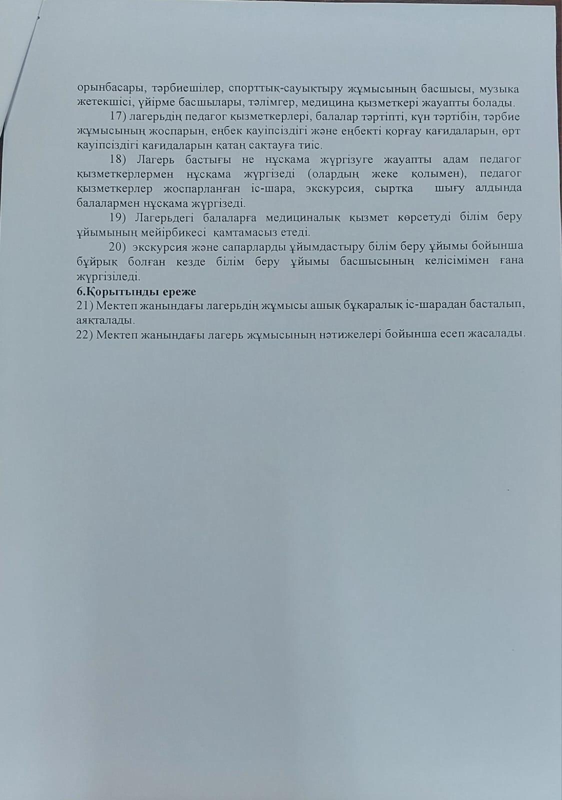 "Балдәурен" жазғы лагері ЕРЕЖЕ