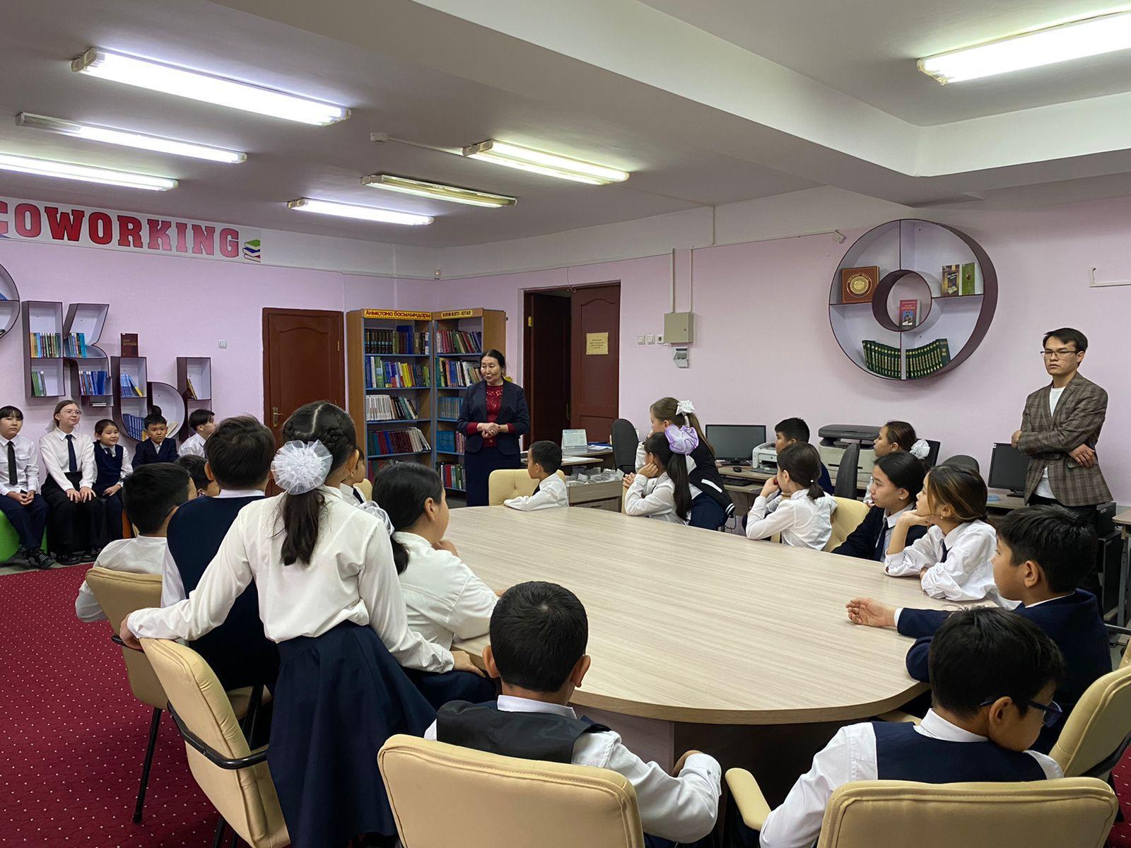 Гимназия кітапханасында 11.10.2022ж күні "Оқуға құштар мектеп" жобасы аясында "Кітаппен бірге ер жетеміз" тақырыбында Абнасырова Ғайни апай 5 "Ә" сыныбымен ашық тәрбие сағатын өтті. Ашық тәрбие сағатының мақсаты: Оқушылардың кітап туралы білімдерін кеңейту, кітапты сүйе білуге, оған құрметпен қарауға тәрбиелеу. Кітап оқуға деген оқушылардың қызығушылартарын арттыру.