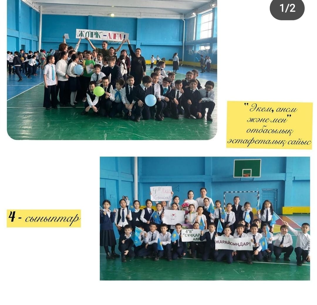 «ӨНЕР – ҰЛТТЫҢ АСЫЛ ҚАЗЫНАСЫ» атты эстетикалық, дене шынықтыру, АӘД пәндері бірлестігінің онкүндігі аясында Р.Ш.Тоқташевтың ұйымдастыруымен 4-сыныптар арасында "ӘКЕМ, АНАМ ЖӘНЕ МЕН" атты спорттық сайыс өткізілді.