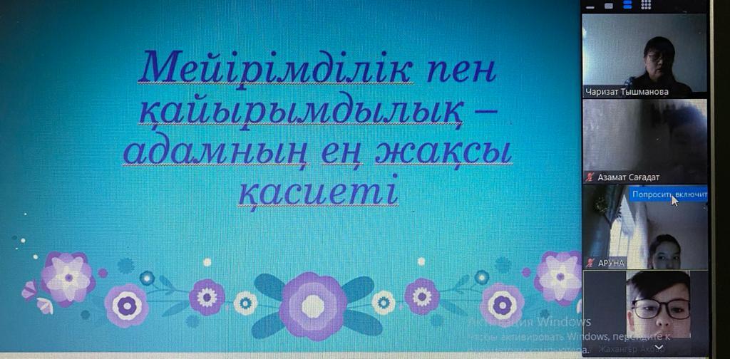 "Мейірімділік пен қайырымдылық - адамның ең жақсы қасиеті" атты ашық тәрбие сағаты өтті.