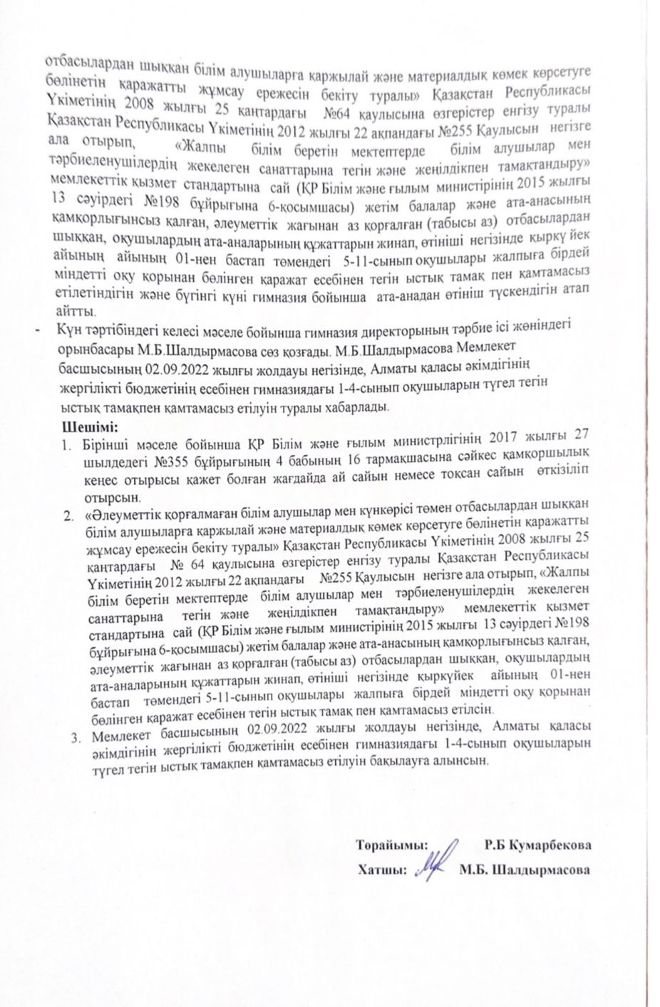 Қамқоршылық кеңесі отырысының №1 Хаттамасы