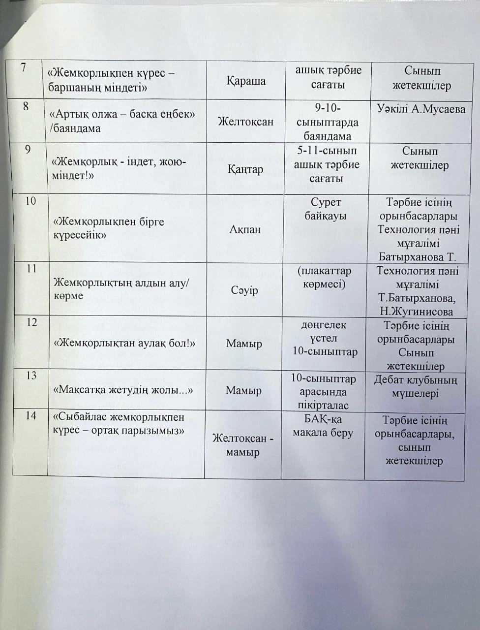 29 август 2024 0 1 2 3 4 5 Сыбайлас жемқорлыққа қарсы күрес бойынша іс-шара жоспары 2024-2025 оқу жылы