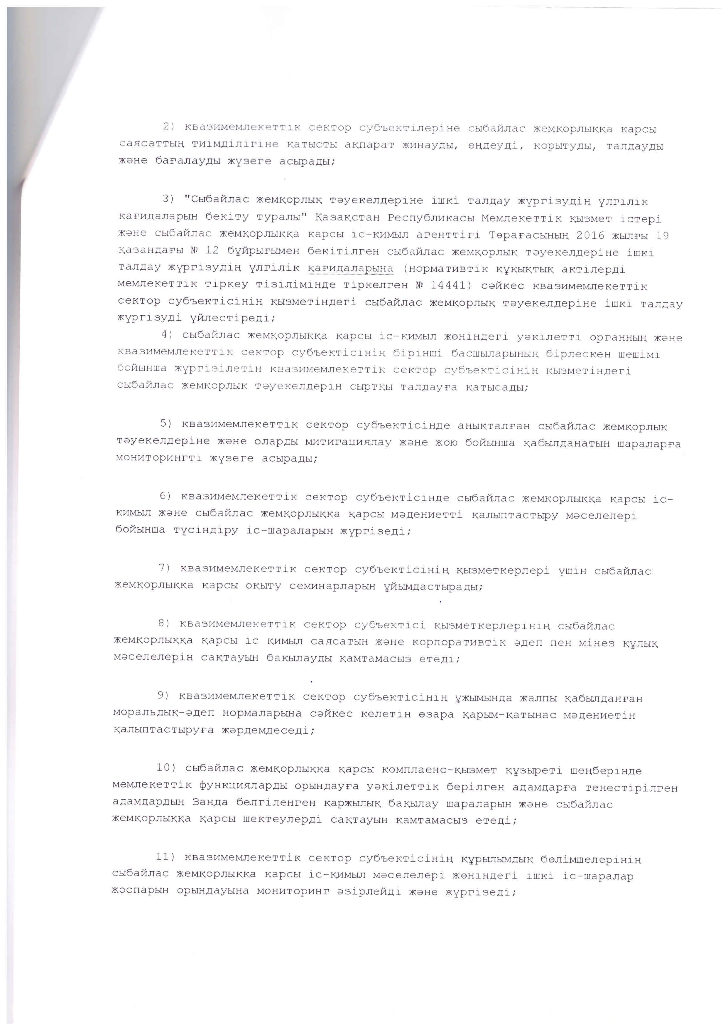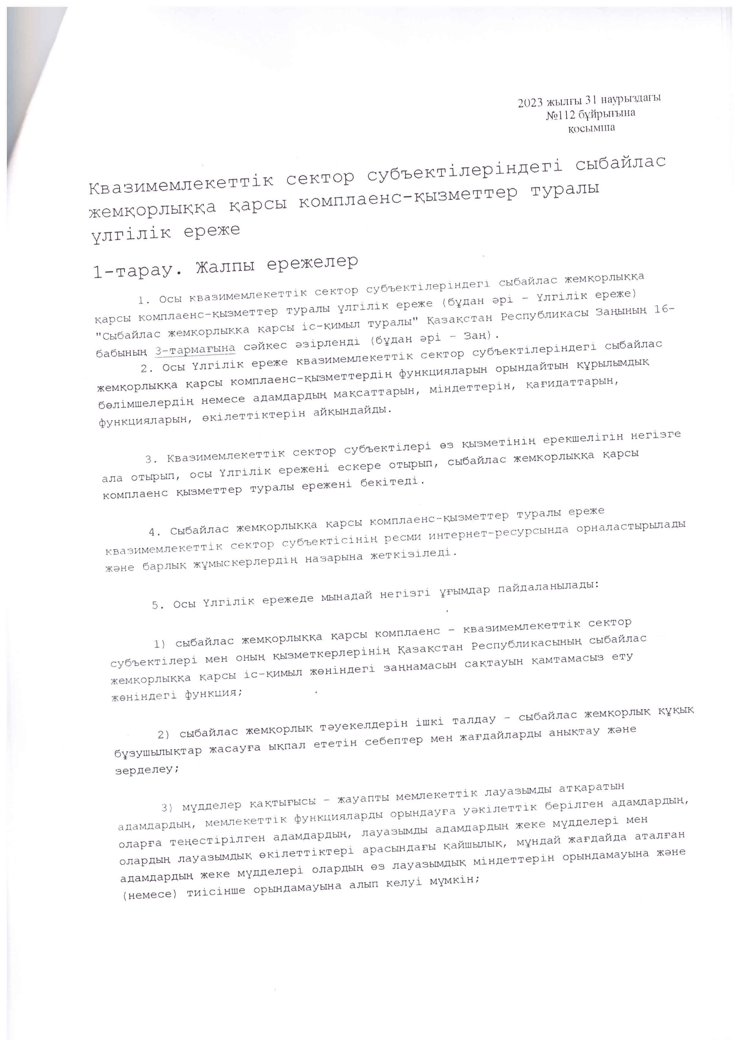 29 август 2024 0 1 2 3 4 5 Сыбайлас жемқорлыққа қарсы іс-қимыл агенттігінің 2023 жылғы 31 наурыздағы №112 бұйрығы