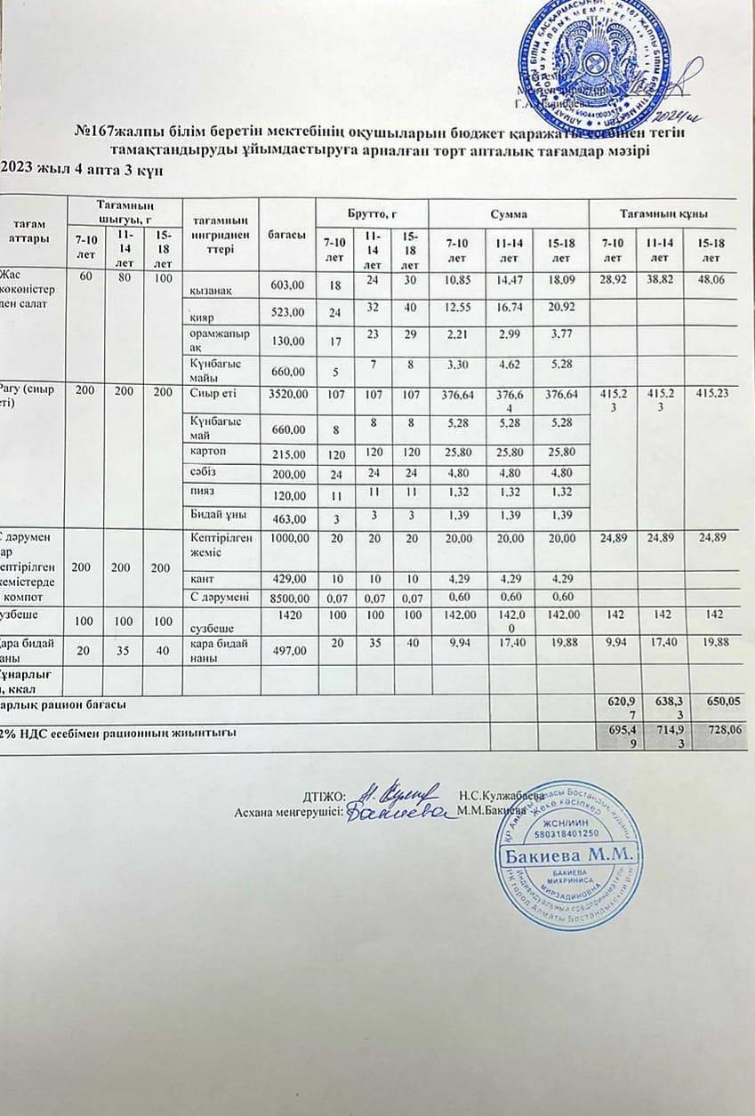 Ас мәзірі 07.10.2024ж/ Меню 07.10.2024г