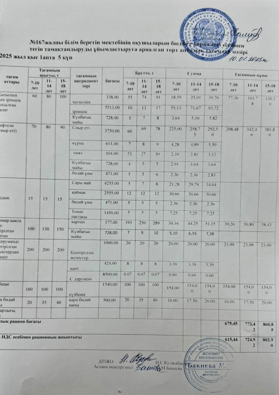Ас мәзірі 10.01.2025/Меню 10.01.2025
