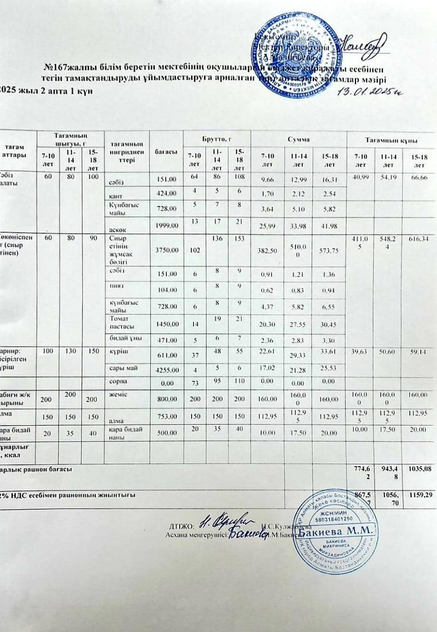 » Ас мәзірі 13.01.2025/Меню 13.01.2025