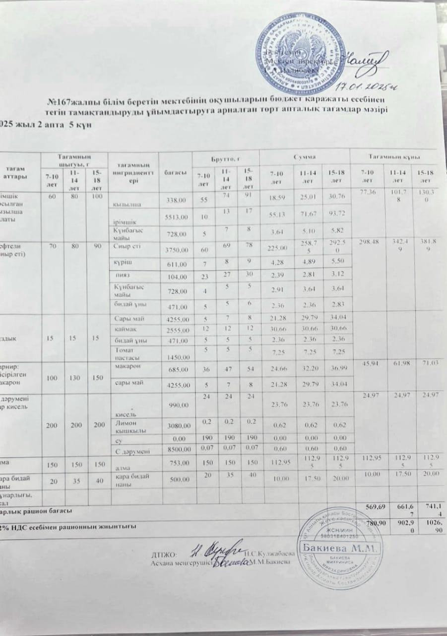 Ас мәзірі 17.01.2025/Меню 17.01.2025