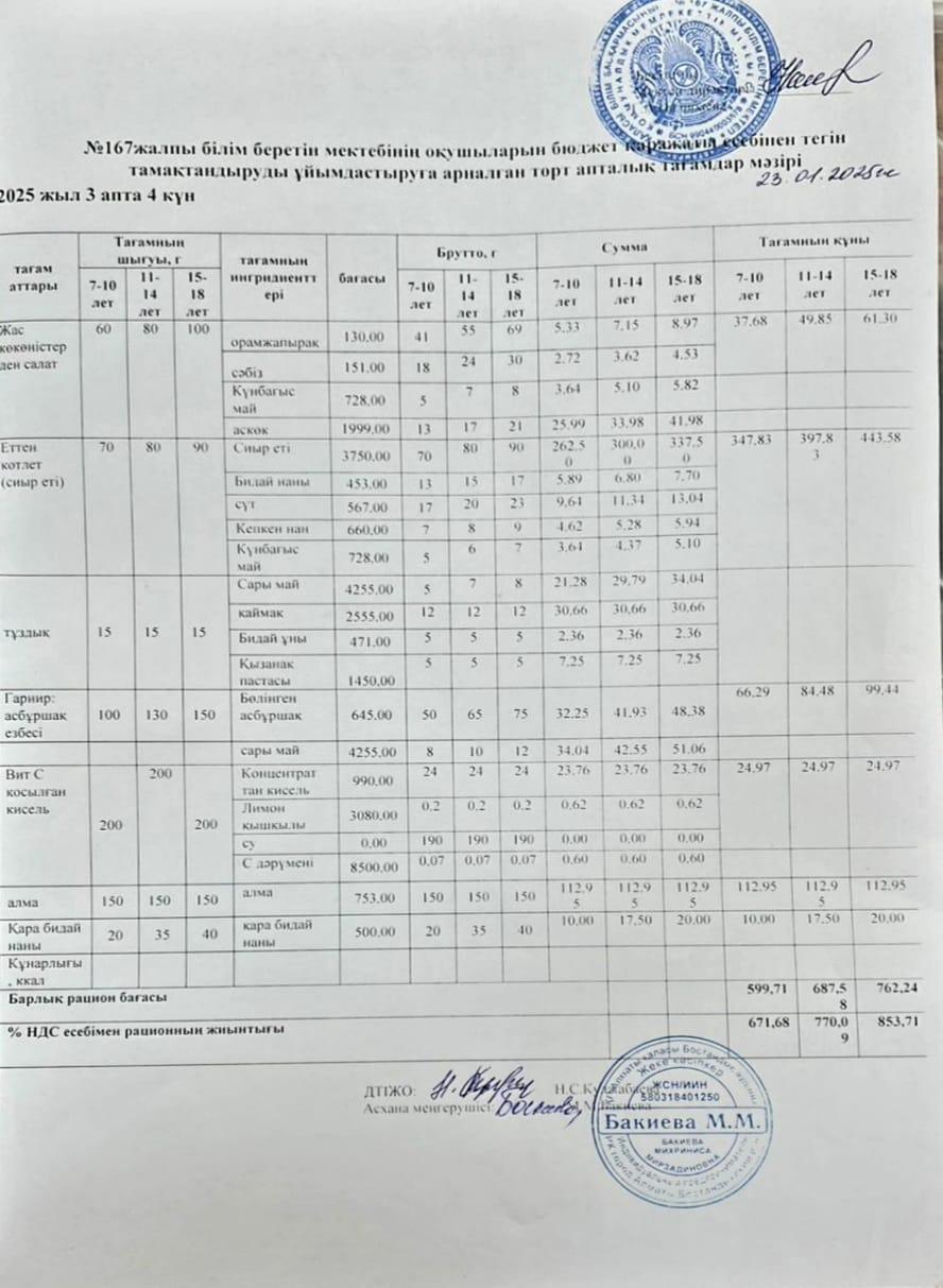 » Ас мәзірі 23.01.2025/ Меню 23.01.2025