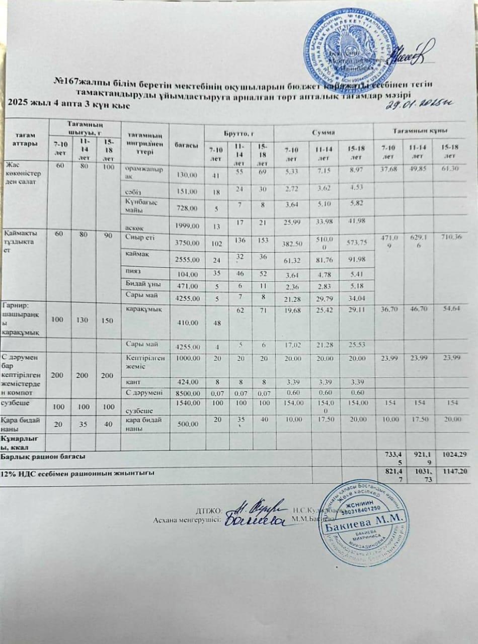 » Ас мәзірі 29.01.2025/ Меню 29.01.2025