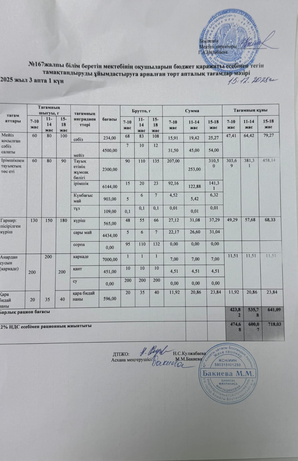 » Ас мәзірі 15.12.2025/Меню 15.12.2025
