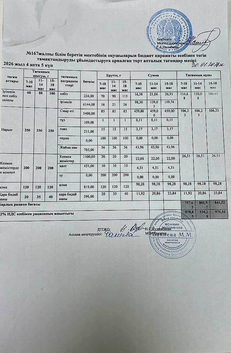 Ас мәзірі 30.01.2026/Меню 30.01.2026