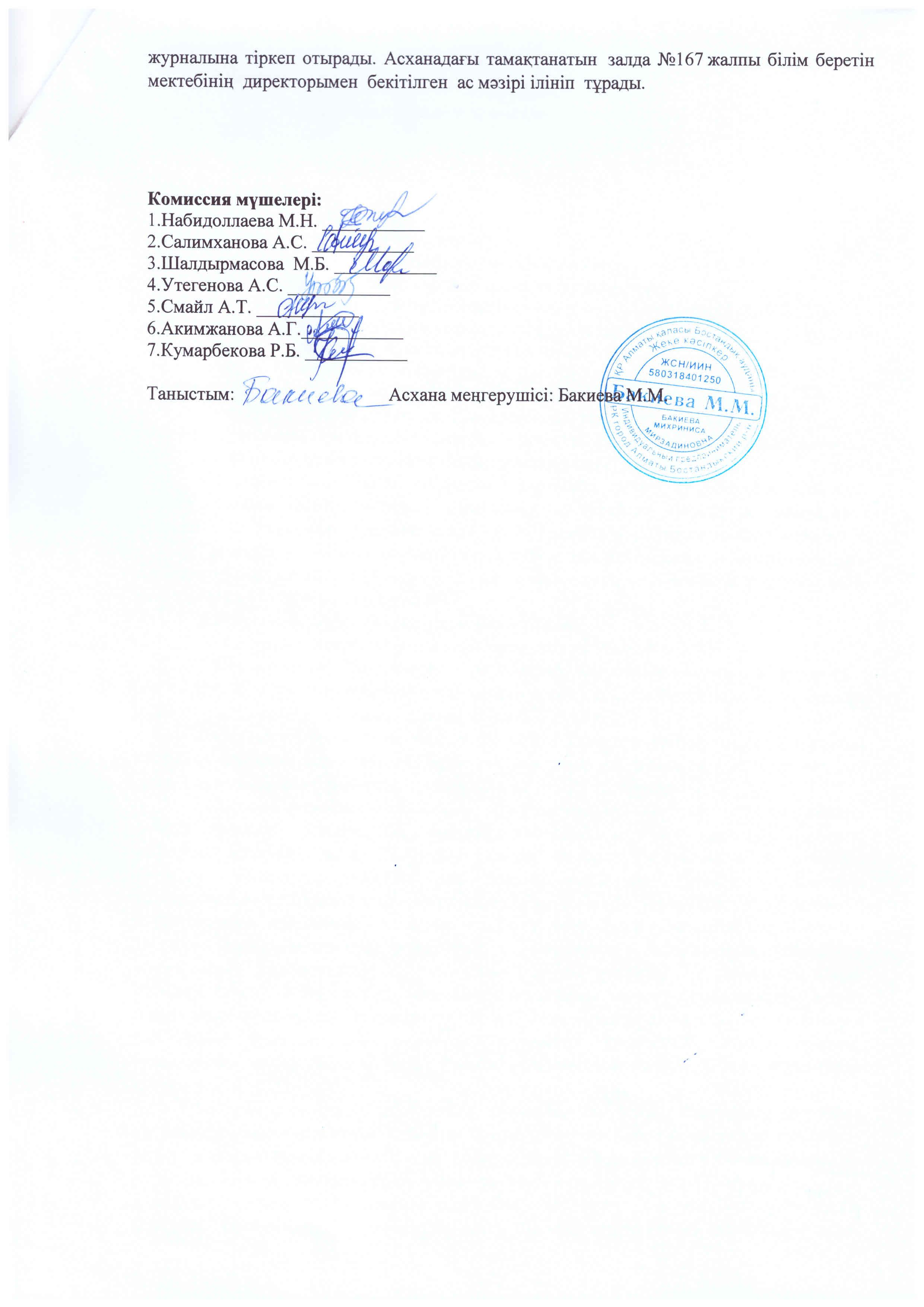 » Тамақтану сапасына мониторинг жүргізу комиссия мүшелерің №4 актісі